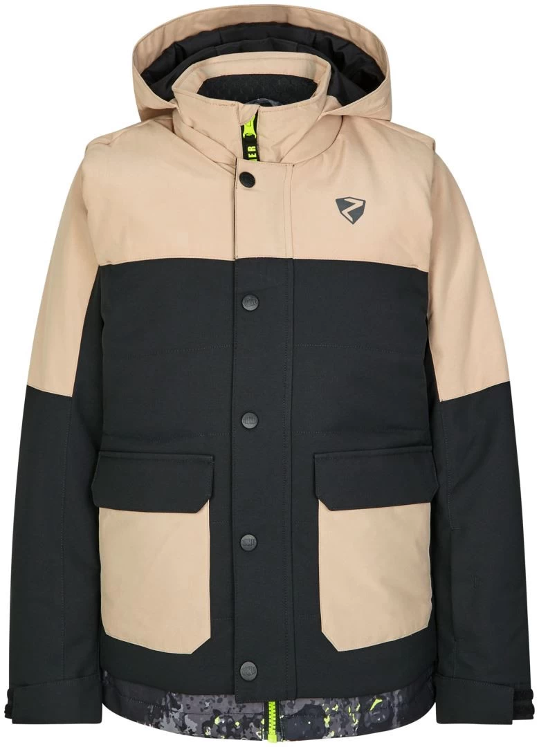 De functionele, gewatteerde ZIENER-ski-jas ANTREYU JUNIOR voor kinderen scoort punten met zijn casual look en past perfect bij de ANTREYU-bodywarmer. Het houdt kinderen betrouwbaar warm bij koud weer dankzij de hoogwaardige 120 g/m² vulling. Het is ook uitgerust met het ademende, waterdichte en winddichte ZIENER AQUASHIELD ® -membraan (hydrostatische kop 10.000 mm/ademend vermogen 10.000 g/m²/24 uur), dat kinderen warm en droog houdt. De warme voering aan de achterkant zorgt voor extra isolatie en de zachte, elastische manchetten zorgen voor een perfecte pasvorm. De belangrijkste naden zijn thermisch afgedicht. Het jack scoort punten met verdere details, zoals een zak voor een skipas, een zak voor een zonnebril en skibril, evenals een sneeuwbeschermer. Kleinere spullen kunnen in de borstzak met rits worden opgeborgen. Het wordt ook geleverd met reflecterende ontwerpelementen. De ski-jas is PFC-vrij dankzij de milieuvriendelijke waterdichtheid.