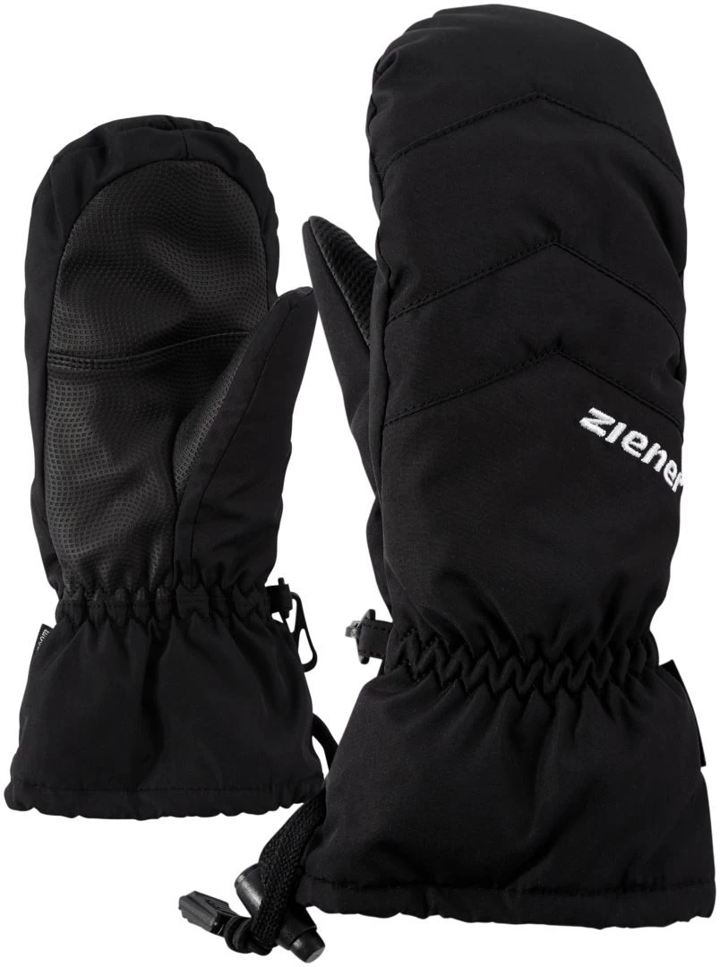 The soft ZIENER children’s ski mittens LETTERO AS® MITTEN JUNIOR with long cuffs are worn over the jacket and can be pulled over sleeves with just one hand using the cord-lock system. They come with the waterproof and windproof ZIENER AQUASHIELD® membrane, which ensures a warm and dry climate inside the gloves.